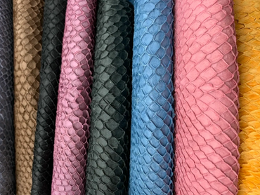 The smooth texture of Salmon leather provides a soft, even surface while retaining its delicate scale pattern. This refined finish is versatile and elegant, making it ideal for polished designs in both fashion and interior applications.
