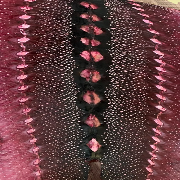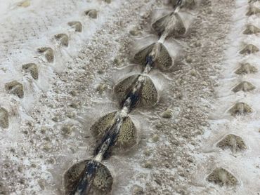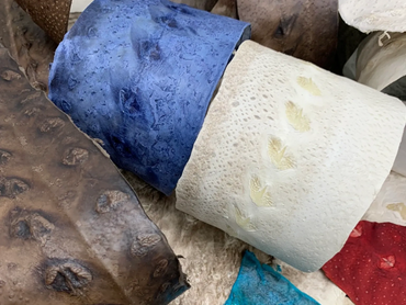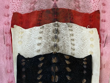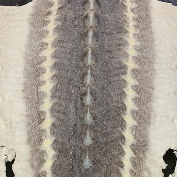 Sturgeon leather with a high-contrast finish highlights the natural patterns and textures, creating a bold, visually striking appearance. This finish is perfect for statement pieces that showcase the leather's unique character.